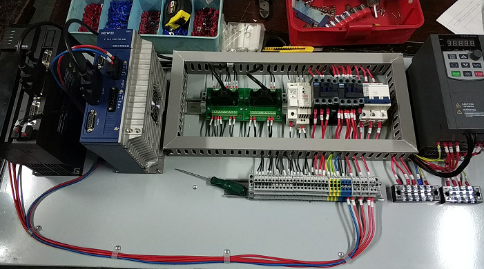 調直切斷機系統(tǒng)用到了電子凸輪運動功能,主流系統(tǒng)控制方案為觸摸屏、運動控制器、送料伺服、飛剪伺服。 科威智能伺服集伺服驅動、PLC控制、運動控制于一體,正好適用于調直切斷機系統(tǒng)。科威智能伺服調直切斷機系統(tǒng)方案為觸摸屏、飛剪智能伺服、送料智能伺服。